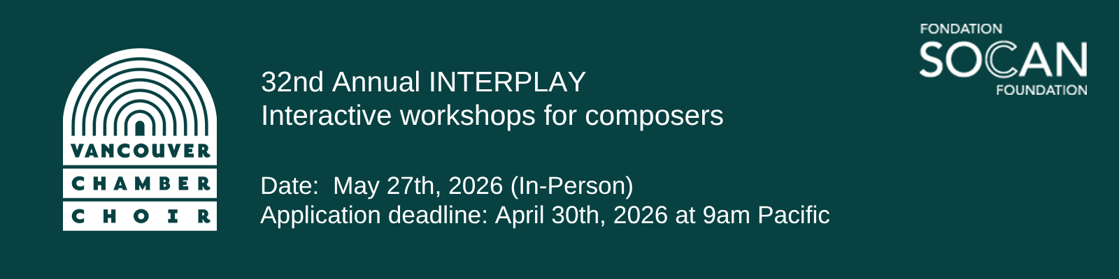 There is no charge to composers for the workshops, thanks to the generous support of the SOCAN Foundation and other supporters of our educational programs.